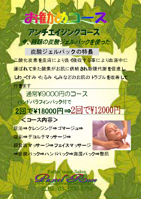 美肌作り・リフレッシュ・リラクゼーションに、どうぞお役立てください。